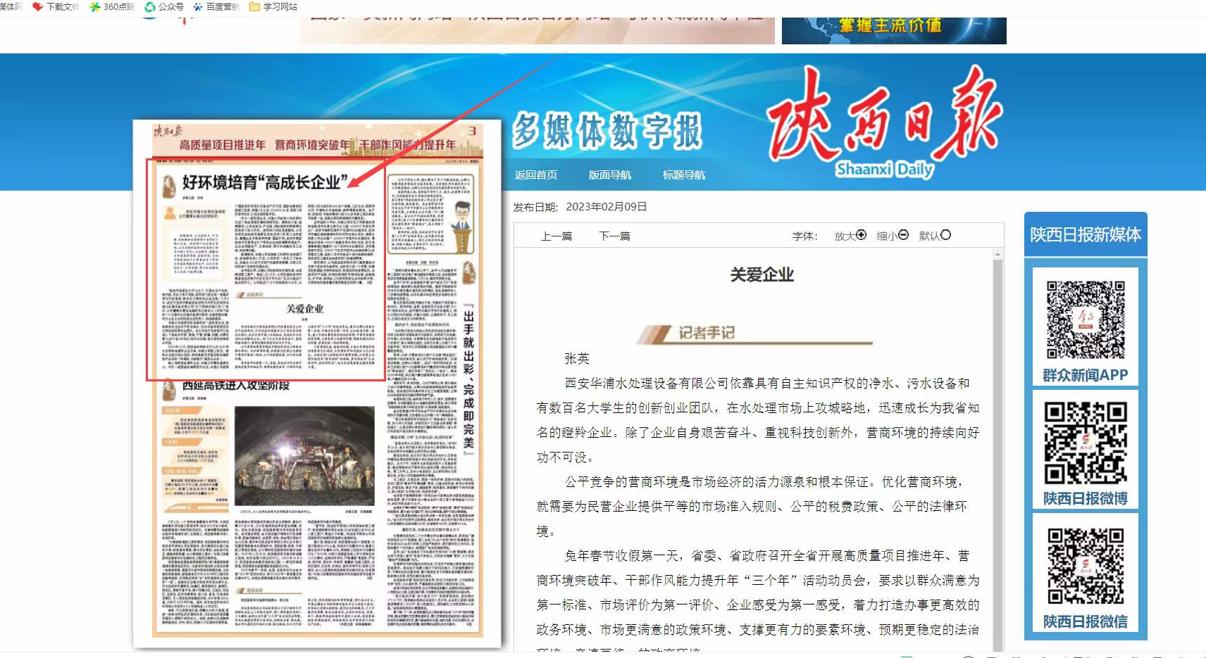 在2023年2月9日陜西日報第3版中:好環境培育“高成長企業”介紹了我公司特殊時期