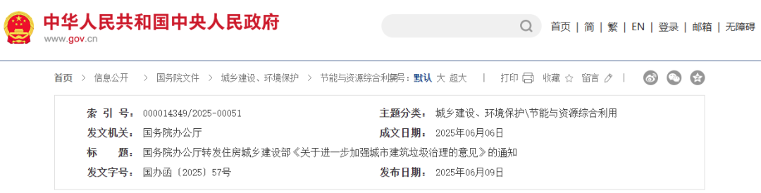 6月6日,住房城鄉(xiāng)建設部《關于進一步加強城市建筑垃圾治理的意見》已經(jīng)國務院同意。